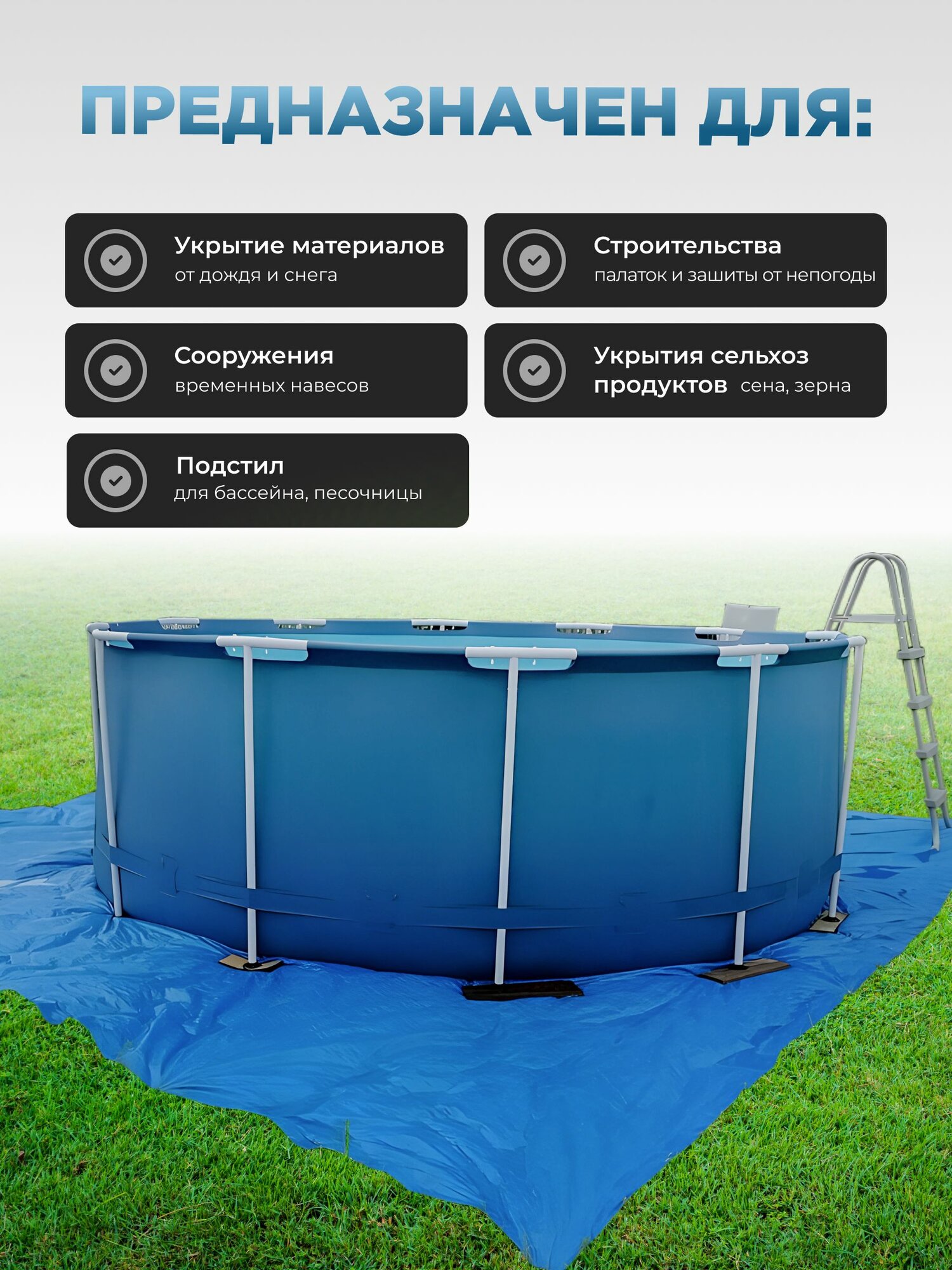 Тент укрывной 5х4 м, с люверсами, универсальный, 60 г/м2, люверсы через 1 м, TP-60-4-5-BL: сравнение цен, характеристики, фото, актуальное наличие и цены.