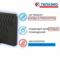 Размеры электроконвектора 600х350х25 мм. Электронагреватель ТеплЭко можно разместить для отопления не только в квартире, но даже в самом небольшом помещении, скажем, в ванне, на даче, в маленьком курятнике или в гараже. КПД 98%. То есть практически вся потребляемая электроэнергия преобразуется в тепловую. Если использовать отражающий экран – все тепло будет отражаться в помещение.
