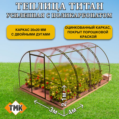 Теплица дачная ТМК Титан премиум разборная 4х3х2,1 м, RAL 6005, с поликарбонатом НАНО 4 мм, 3 листа: сравнение цен, характеристики, фото, актуальное наличие и цены.