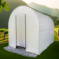 - Дышащий материал. В качестве чехла теплицы используется специальное нетканое полотно высокой плотности - 90 г/м2 (спанбонд). Чехол избавлен от недостатков поликарбоната и пленок - растения под ним дышат. Температура внутри остается теплой в прохладную погоду и не зашкаливает в жару. Материал пропускает влагу, что избавит от необходимости постоянного контроля влажности внутри теплицы. Имеется встроенная дверь и форточка для проветривания в жаркую погоду. Чехол съемный, его можно стирать или заменить по мере износа.