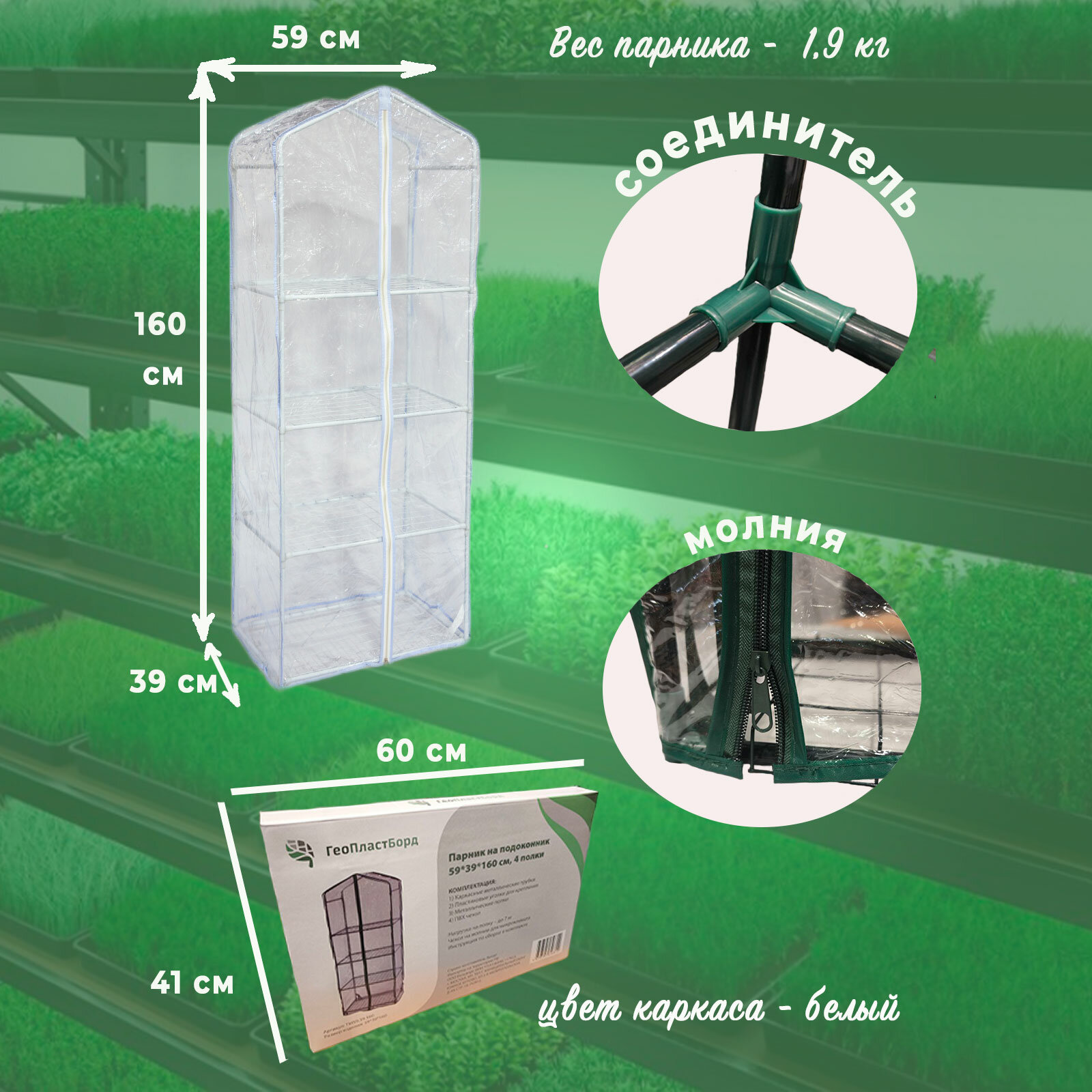 Теплица парник для рассады на подоконник ГеоПластБорд 59х39х160 см 4 полки с чехлом цвет белый: сравнение цен, характеристики, фото, актуальное наличие и цены.