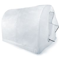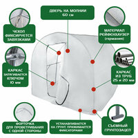 - Дышащий материал. В качестве чехла теплицы используется специальное нетканое полотно высокой плотности - 90 г/м2 (спанбонд). Чехол избавлен от недостатков поликарбоната и пленок - растения под ним дышат. Температура внутри остается теплой в прохладную погоду и не зашкаливает в жару. Материал пропускает влагу, что избавит от необходимости постоянного контроля влажности внутри теплицы. Имеется встроенная дверь и форточка для проветривания в жаркую погоду. Чехол съемный, его можно стирать или заменить по мере износа.