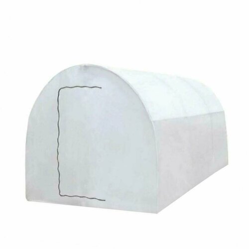 Покрытие теплицы выполнено из спанбонда плотностью 90 г/м2. Этот материал обладает высокой прочностью и устойчивостью к воздействию ультрафиолетовых лучей, что обеспечивает защиту растений от неблагоприятных погодных условий.
