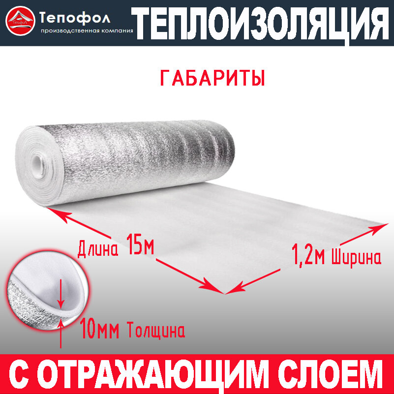 Теплоизоляция «Тепофол» с отражающим слоем, 15 м, толщина 10 мм: сравнение цен, характеристики, фото, актуальное наличие и цены.