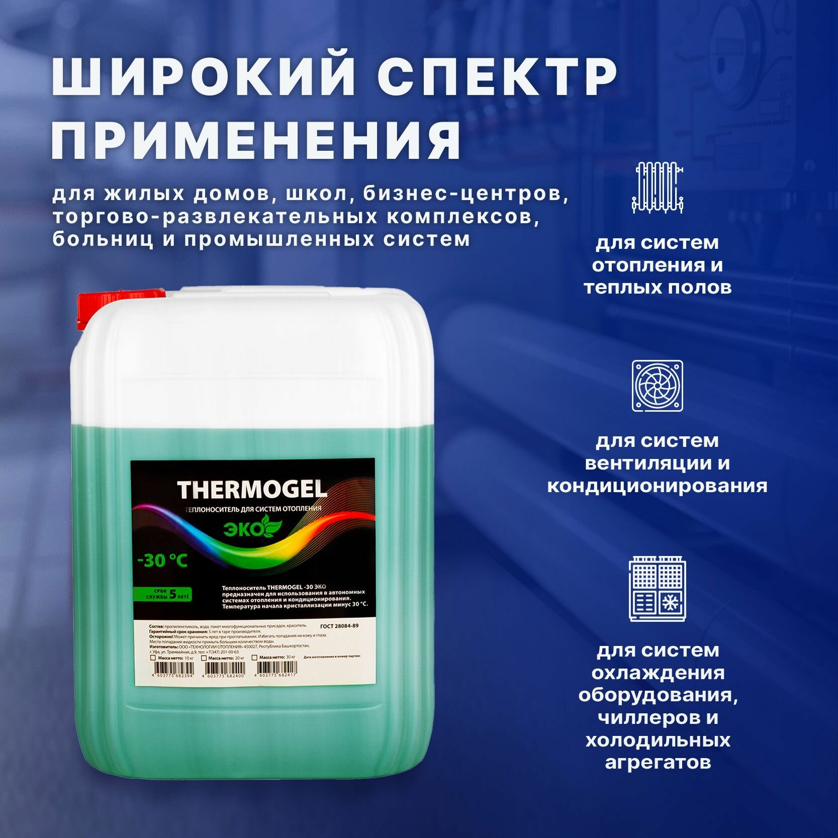 Теплоноситель THERMOGEL пропиленгликоль -30 10 кг зеленый: сравнение цен, характеристики, фото, актуальное наличие и цены.