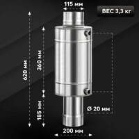 Теплообменник изготовлен из стали AISI 439 с добавлением Титана и Хрома 17%, которая обладает более высокой коррозионной стойкостью. Благодаря этому увеличивается срок службы изделия. Высота тела теплообменника 360 мм.