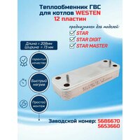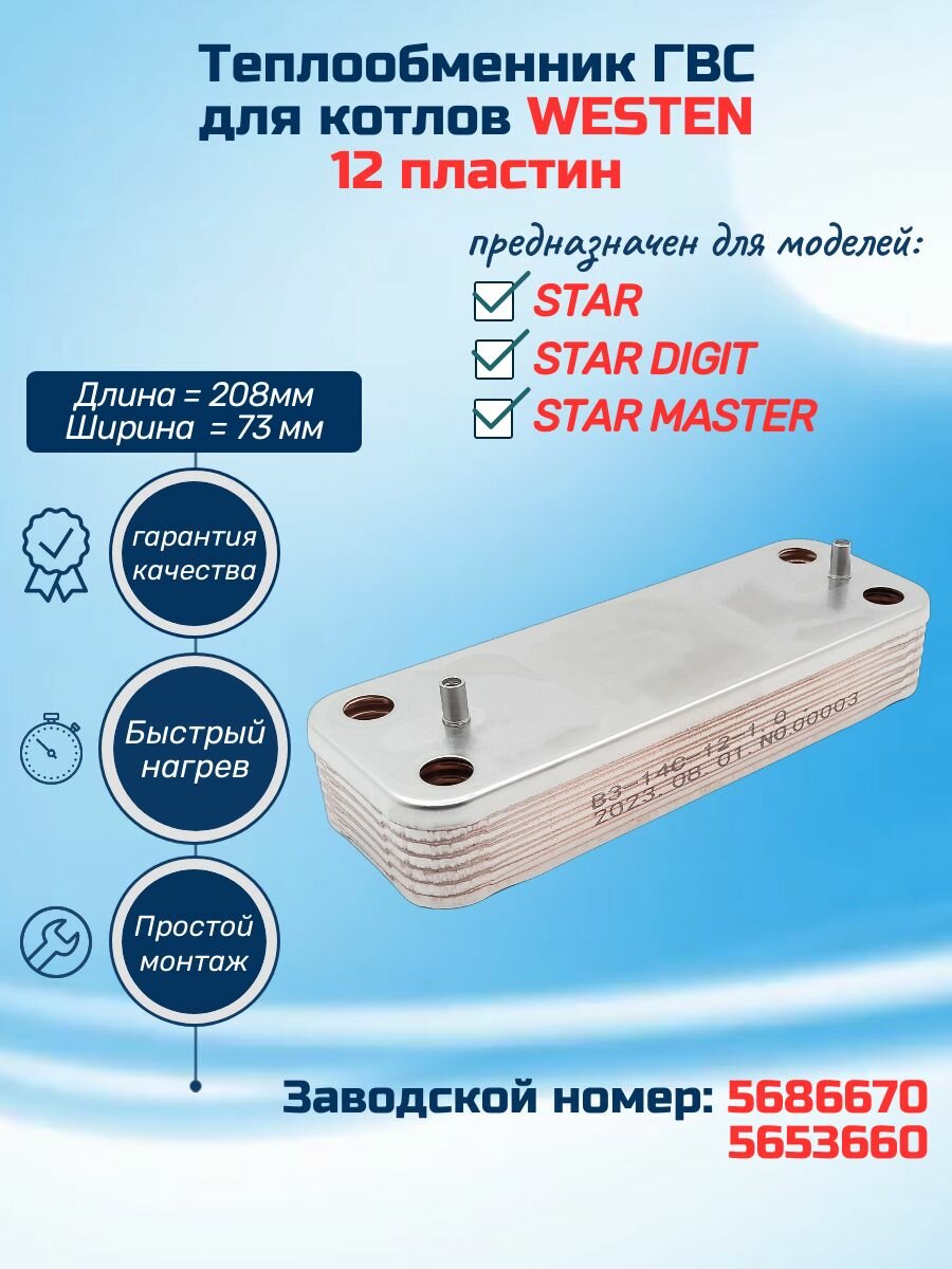 Теплообменник для котла WESTEN Star 5686670 5653660 вторичный ГВС 12 пластин: сравнение цен, характеристики, фото, актуальное наличие и цены.