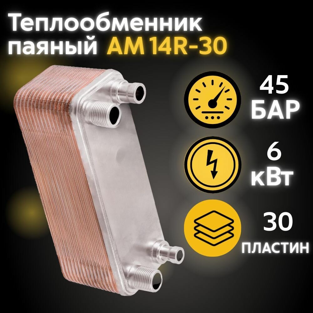 Купить Теплообменник паяный АМ14R-30 , нержавеющая сталь, 30 пластин, 6кВт с доставкой по всей России. Теплообменник паяный АМ14R-30 , нержавеющая сталь, 30 пластин, 6кВт: сравнение цен, характеристики, фото, актуальное наличие и цены.