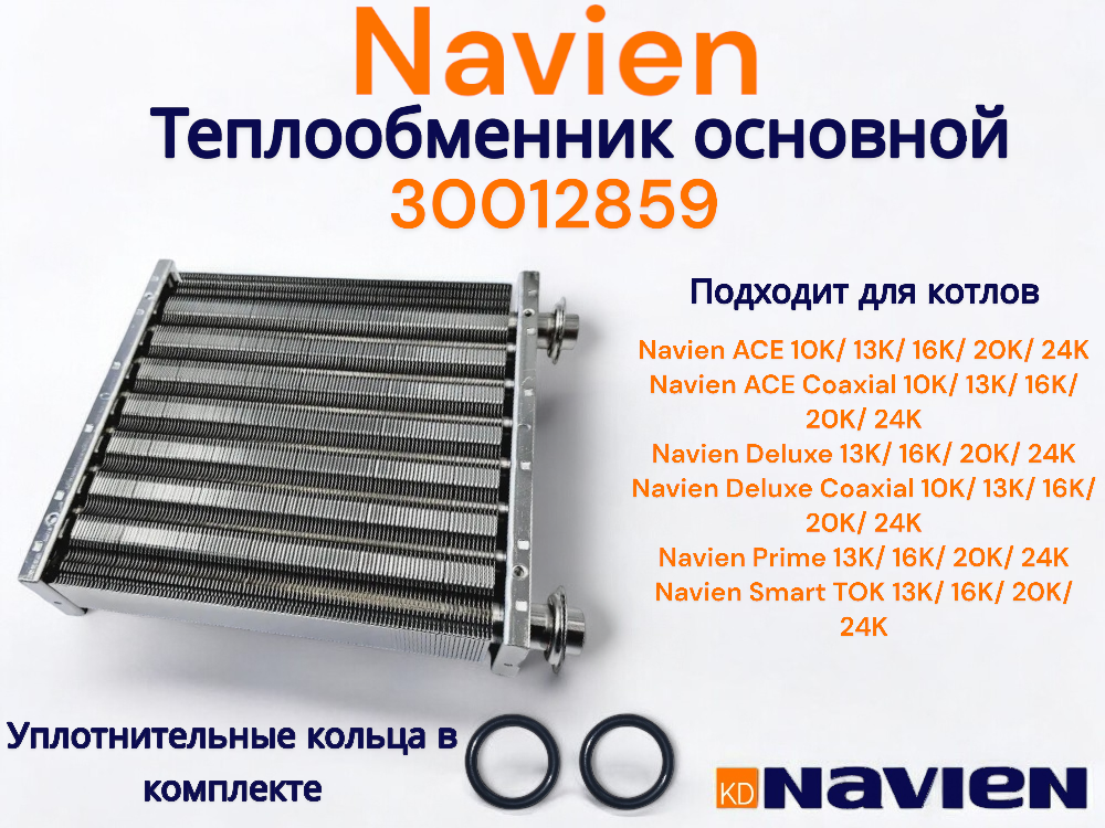 Теплообменник первичный (Основной) для котлов NAVIEM Ace, Deluxe, Prime 13K-24K (30012859C): сравнение цен, характеристики, фото, актуальное наличие и цены.