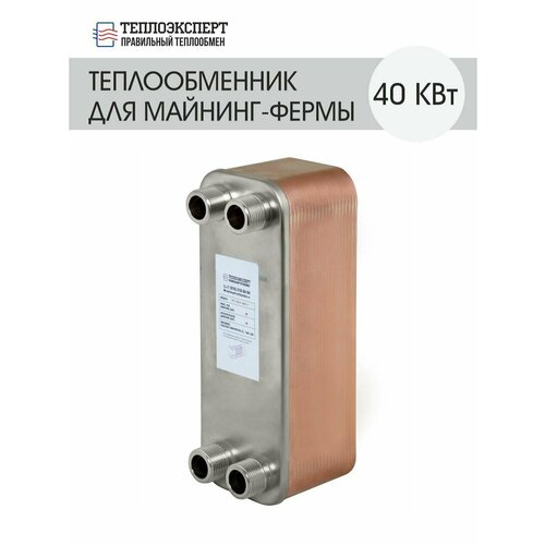 Паяный пластинчатый теплообменник Теплоэксперт предназначен для иммерсионного охлаждения асиков водой в майнинг-ферме. Вода поступает в теплообменник с температурой 25 С и охлаждает асики с 60 до 40 градусов. В процессе иммерсионного охлаждения асиков температура воды нагревается до 40 С и далее, вода, как самостоятельный теплоноситель, может использоваться в системе теплого пола или отопления. Теплообменник может работать и на других температурных графиках, при этом, дельта температур между иммерсионной жидкостью и водой должна быть не менее 35 градусов C. (то есть, если асики максимально греются до 55 градусов C, то охладитель – вода должна быть на входе в теплообменник не менее 20 С и т. д.). Если входная температура поступающего охладителя – воды ниже 20 С (например 10С – 15С), то теплообменник будет работать с хорошим запасом, при этом можно регулировать температуру воды на выходе из теплообменника с помощью автоматики. 1. Мощность - 40 кВт. 2. Иммерсионное масло - Вход: 60 градусов С, Выход: 40 градусов С. 3. Охладитель – Вода – вход – 25 С, выход из теплообменника – 40 С и дальнейшее поступление в систему отопления / теплого пола, как самостоятельного теплоносителя. 4. Патрубки: Ду25 (1"), наружная резьба. 5. Пластины теплообменника изготовлены из нерж. стали - AISI316 с добавлением молибдена, устойчивы к коррозии и воздействию высоких температур; 6. Гарантия – 12 месяцев. Рабочие характеристики: • Максимальное рабочее давление - 30 бар; • Максимальная рабочая температура – 225С; • Минимальная рабочая температура – минус 195С. Данная модель паяного пластинчатого теплообменника обладает очень компактными размерами, поэтому вы легко сможете разместить его в коллекторном шкафе или любой нише. Паяный пластинчатый теплообменник Теплоэксперт представляет собой отличную замену дорогим теплообменникам европейских брендов, таким таким как LB31-40-1" Secespol, SL12-40TL паяный теплообменник Sondex, S12-40 паяный пластинчатый теплообменник ONDA, B10-40 паяный пластинчатый теплообменник Swep, E6T-40 паяный пластинчатый теплообменник SWEP, GBS 418-40 паяный пластинчатый теплообменник Кельвион / Kelvion, CBH30AQ-40H паяный пластинчатый теплообменник Альфа Лаваль / Alfa-Laval и т. д. Уважаемые покупатели! Если информации в описании товара Вам недостаточно для подбора необходимой модели теплообменника, Вы всегда сможете адресовать Ваш вопрос через форму обратной связи и команда бренда теплообменников Теплоэксперт всегда с радостью окажет вам профессиональную консультацию и помощь в подборе необходимой модели теплообменника именно в вашем случае!