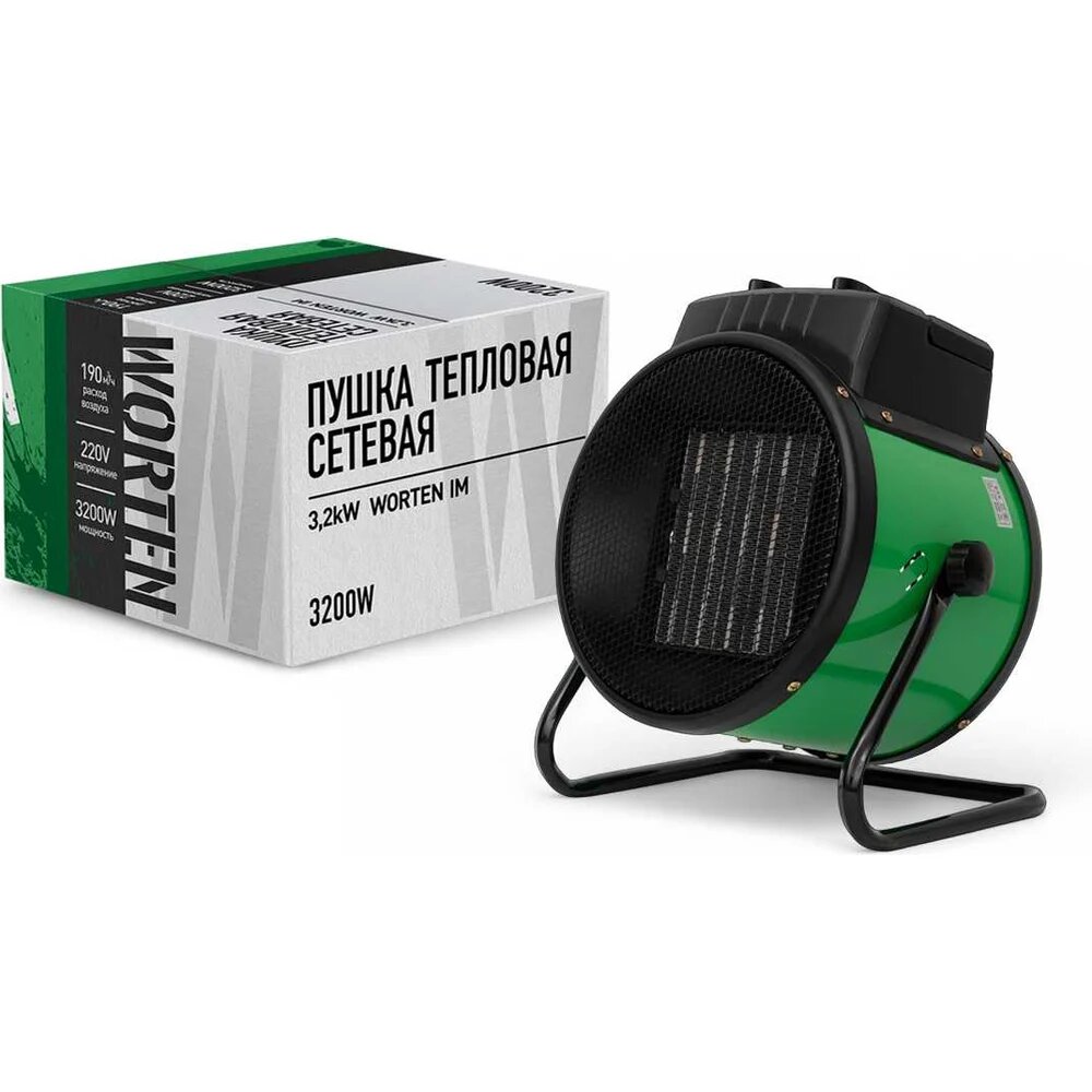 Тепловая электрическая пушка WORTEN сетевая 3,2kW, керамический нагревательный элемент КА-90000350: сравнение цен, характеристики, фото, актуальное наличие и цены.