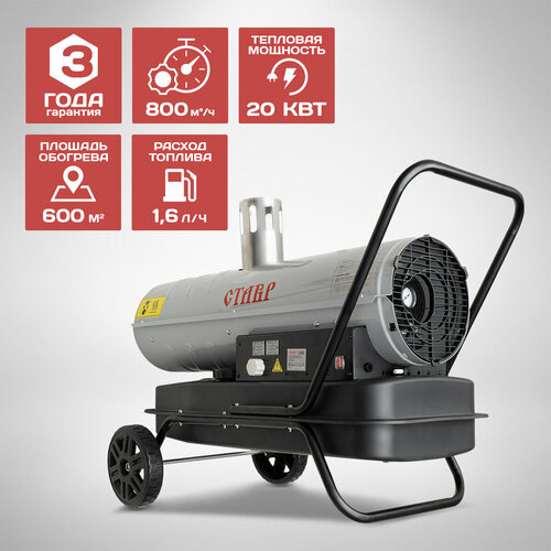 Тепловая пушка ПТД-20НЭ работает на дизельном топливе и применяется для обогрева нежилых вентилируемых помещений, таких как гаражи, склады, строительные и производственные площади.