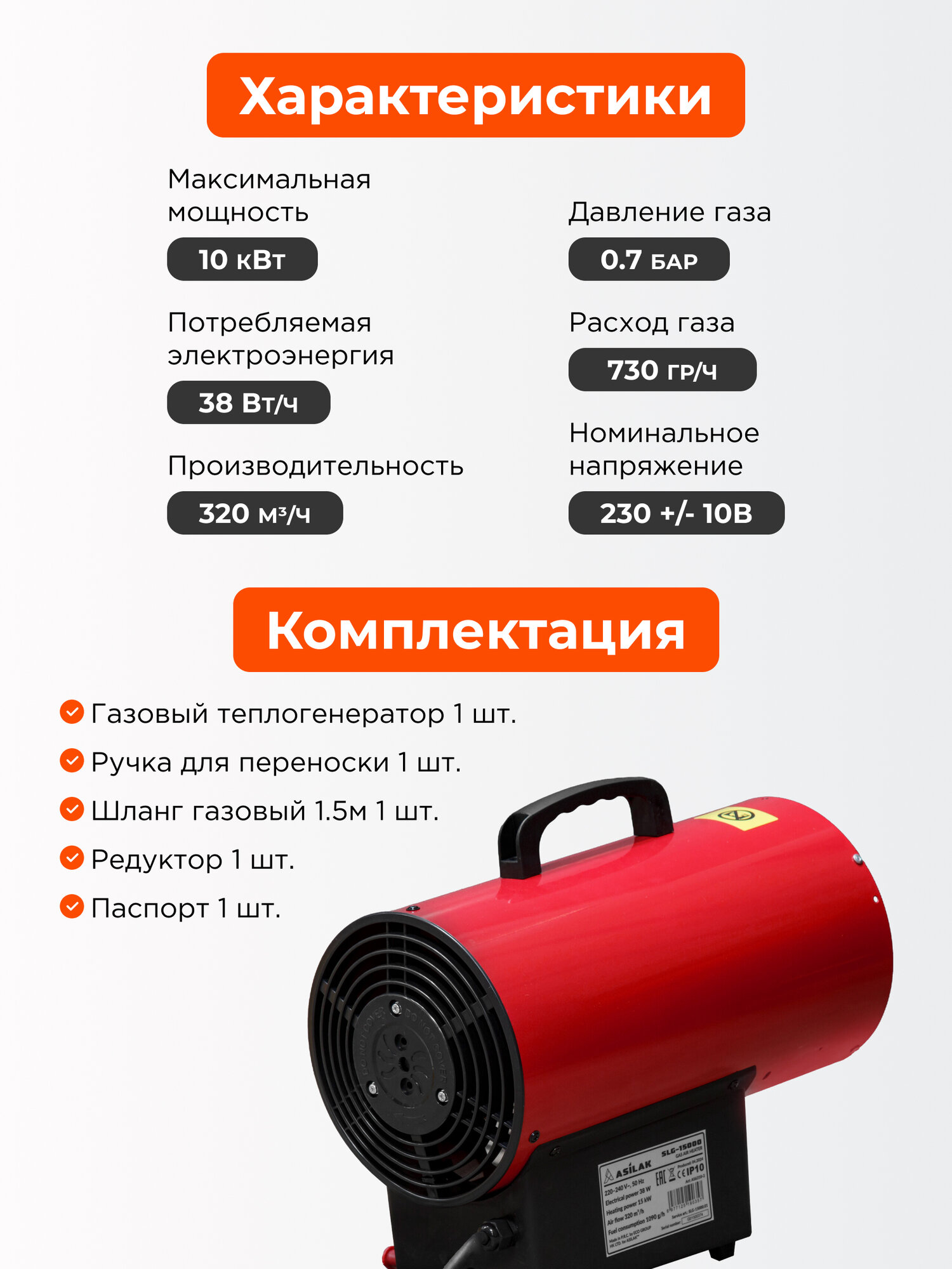 Тепловая пушка газовая Asilak SLG-10000 (10 кВт 320 куб. м/час) (AS6310-1): сравнение цен, характеристики, фото, актуальное наличие и цены.
