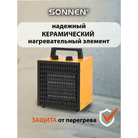 Купить Тепловая пушка, обогреватель для дома электрический напольный 2000Вт, керамический нагреватель, 2 режима, Sonnen, 456205 с доставкой по всей России.