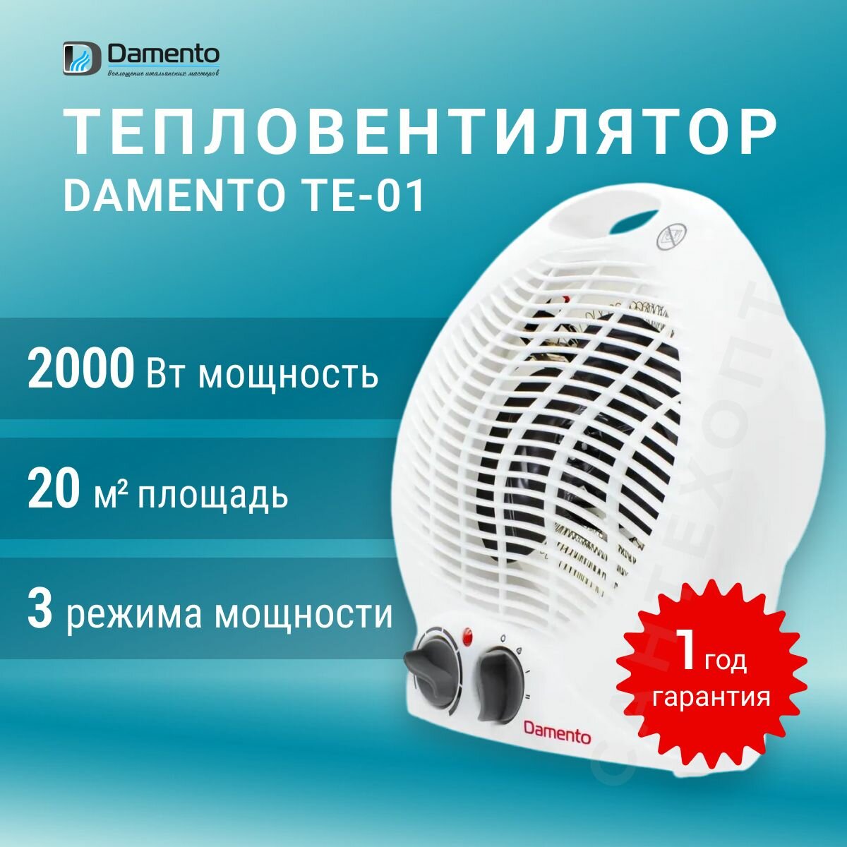 Тепловентилятор DAMENTO TE-01, мощность 2000 Вт, нагрев. эл. спираль, 3 режима работы: сравнение цен, характеристики, фото, актуальное наличие и цены.