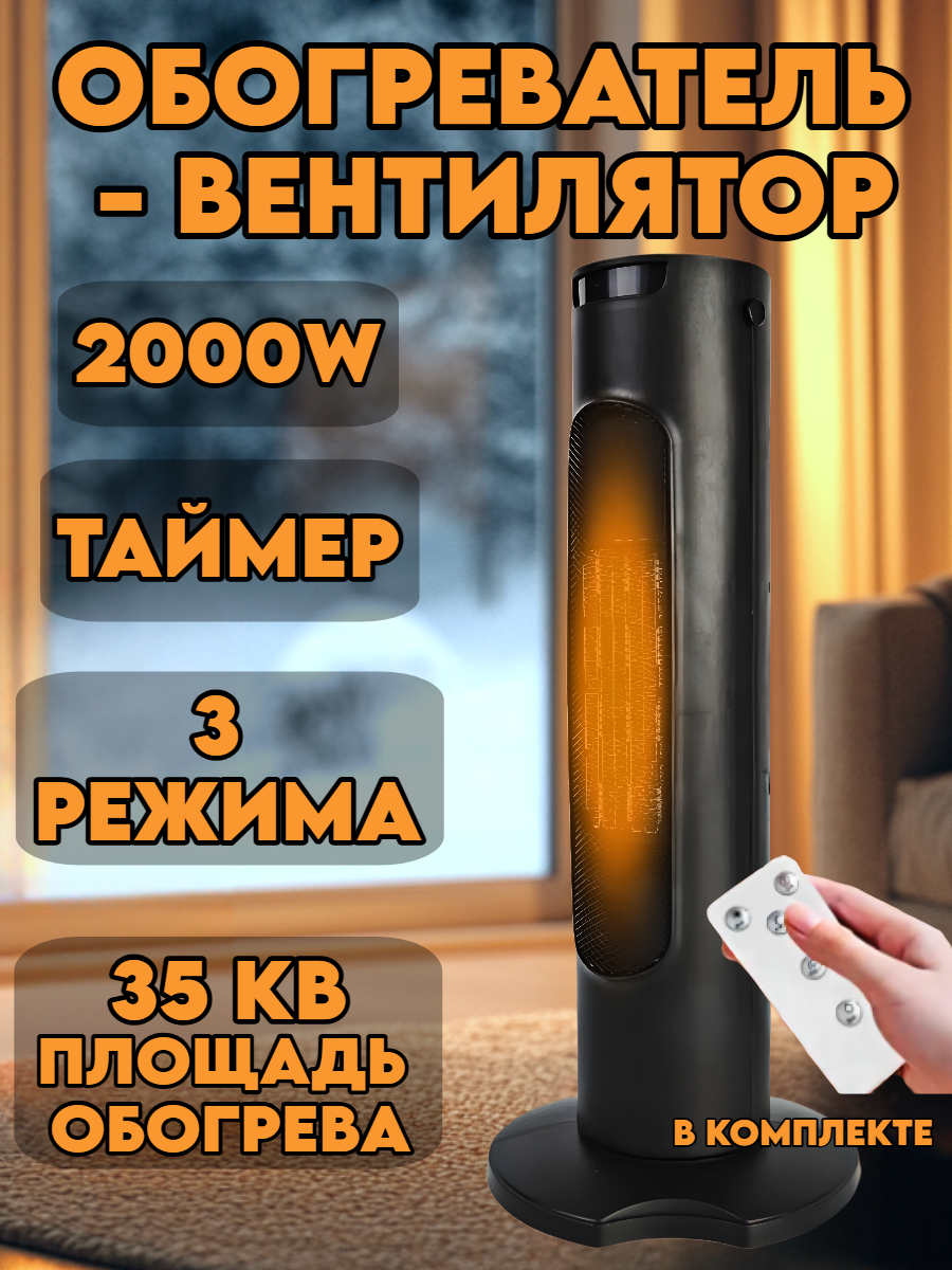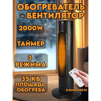Купить Тепловентилятор обогреватель электрический напольный 2000 Вт с пультом черный с доставкой по всей России.