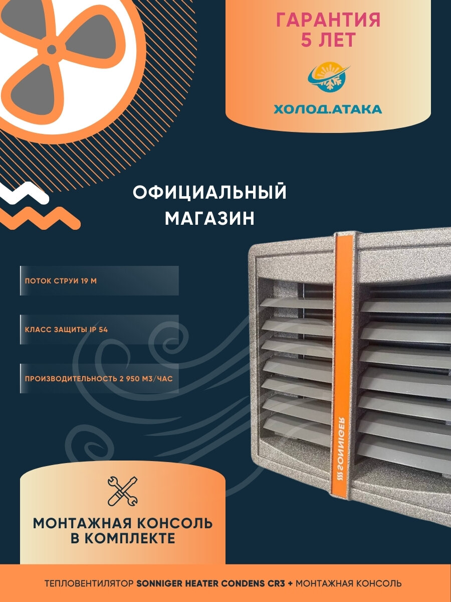 Тепловентилятор водяной SONNIGER HEATER CONDENS CR3 20-70кВт (С крепежной консолью): сравнение цен, характеристики, фото, актуальное наличие и цены.