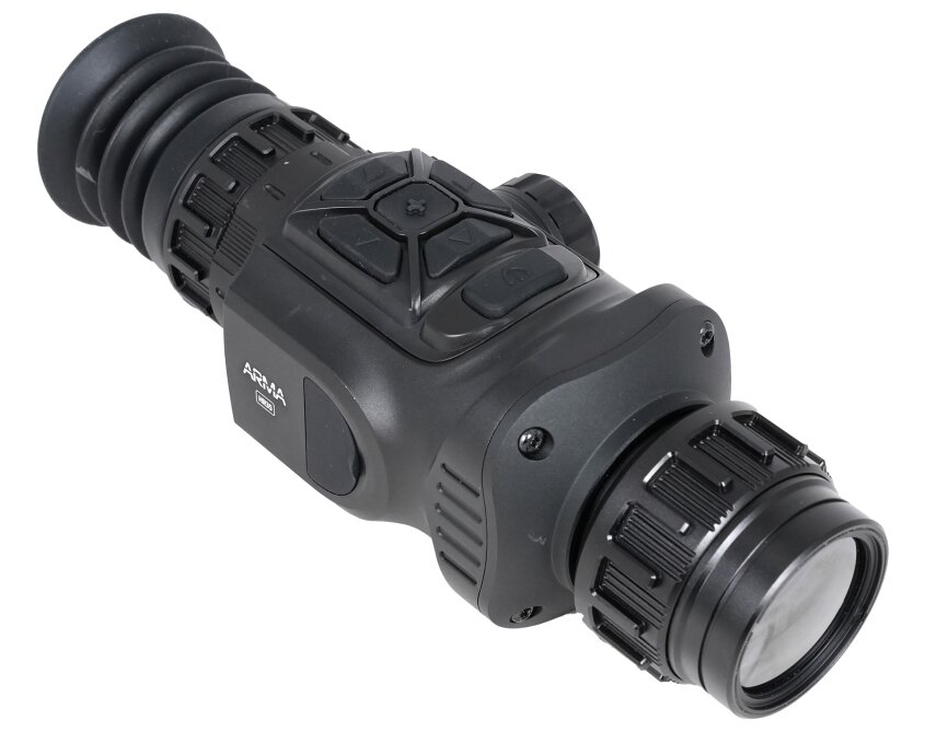 прицел Arkon Arma HR35 прицел Arkon Arma HR35 — младшая модель из новой линейки 2024 года, представленная в премиальном сегменте. Компактный дизайн и широкий функционал позволяют эффективно использовать устройство в сложных условиях видимости. Дальность обнаружения составляет 1653 метра, что обеспечивает быструю идентификацию и точное поражение целей на средних и дальних дистанциях. Принцип работы Работа прицела основана на преобразовании невидимого теплового излучения объектов в детализированное изображение, отображаемое на микродисплее. Это дает прицелу значительное преимущество перед обычными оптическими моделями, позволяя уверенно различать цели и точно прицеливаться в любых условиях освещенности: в полной темноте, густом тумане, дыме или дожде. Описание прицелаВ основе видения Arkon Arma HR35 лежит инновационный ИК-сенсор Uncooled VOx с разрешением 640x512 пикселей. Матрица изготовлена по технологии плотности детекторов 12 мкм. Высокая тепловая чувствительность NETD ≤25 мК позволяет улавливать минимальные температурные колебания и создавать детализированные изображения. Тепловизор работает в длинноволновом инфракрасном диапазоне 7-14 мкм, который совпадает с окном прозрачности земной атмосферы, что позволяет прицелу «видеть» как в темноте, так и через туман или дым. Оптические характеристикиПрицел оснащен германиевым объективом с фокусным расстоянием 35 мм и апертурой F1.0. Угол поля зрения FOV составляет 12.5°x10°, что позволяет видеть пространство размером 21,9 x 17,5 метров на дистанции 100 метров. Базовая кратность равна 1,6x, а с помощью функции Digital zoom кратность можно плавно изменять от 1x до 8x. Дисплей и настройкиВ окуляре установлен морозоустойчивый OLED-дисплей с диагональю 0,39 дюйма и разрешением 1024x768 пикселей. Для индивидуальной настройки зрения предусмотрена регулировка диоптрий, а также можно настроить яркость и контрастность. Дисплей отличается низким энергопотреблением и работает стабильно даже при температуре до -20°C. Цветовые палитры и прицельные сеткиПрицел поддерживает шесть цветовых палитр для адаптации под разные условия видимости: Горячий белый Горячий черный Горячий красный Радужный Раскалённое железо Холодные оттенки Эти палитры помогают улучшить восприятие изображения и выделить объекты при незначительных температурных контрастах. Для точной стрельбы предусмотрено шесть прицельных сеток, включая Мил-Дот и его усовершенствованные версии. Пользователи могут настраивать цвет и яркость сетки для оптимального контраста. Пристрелка может выполняться традиционным способом по СТП группы выстрелов или с помощью функции «заморозка» экрана, что экономит время и боеприпасы. Мультимедийные функцииArkon Arma HR35 оснащен встроенной памятью на 16 Гб для записи видео. Видеовыход CVBS позволяет подключать внешние устройства воспроизведения. Прицел также поддерживает Wi-Fi с функцией «Точка доступа», что позволяет транслировать видео на смартфоны и планшеты в режиме реального времени. Управление всеми функциями устройства можно выполнять через фирменное мобильное приложение. Корпус и защитаКомпактный корпус прицела изготовлен из полиамидных материалов и соответствует стандарту защиты от влаги IP66. Прицел рассчитан на работу с оружием крупных калибров и выдерживает дульную энергию до 6000 Дж. ЭнергоснабжениеПитание осуществляется от см