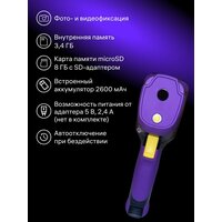 | Дополнительная информация | Яркий LCD-дисплей 2,4 дюйма с частотой 25 Гц и разрешением 240x320 пикс 8 цветовых палитр для удобного анализа термограмм Встроенный рекордер, сохранение фото и видео во встроенную память и на карту microSD Передача данных на ПК через проводное подключение, порт USB Type-C Литий-ионный аккумулятор 2600 мАч, до 4 часов автономной работы Программа для Windows для анализа и сохранения термограмм |