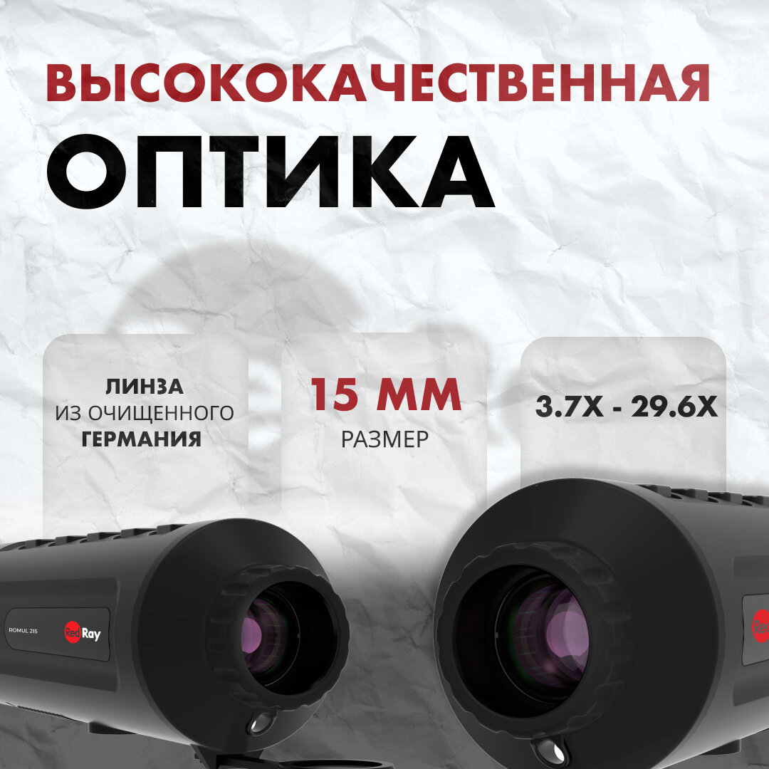 Тепловизор монокуляр для охоты RedRay Romul 215, 256×192, 3.7x — 29.6x, гарантия 3 года: сравнение цен, характеристики, фото, актуальное наличие и цены.