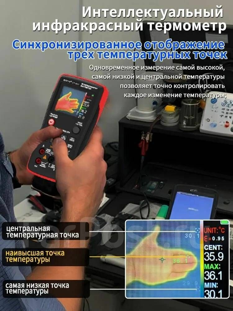 Главная особенность: единственный в своём классе прибор, который совмещает инфракрасный тепловизор (32×32 пикселя, диапазон 8–14 мкм) и цифровой мультиметр с разрядностью 25 000 отсчётов. Идеален для комплексной диагностики: «видит» перегрев и сразу измеряет электрические параметры.