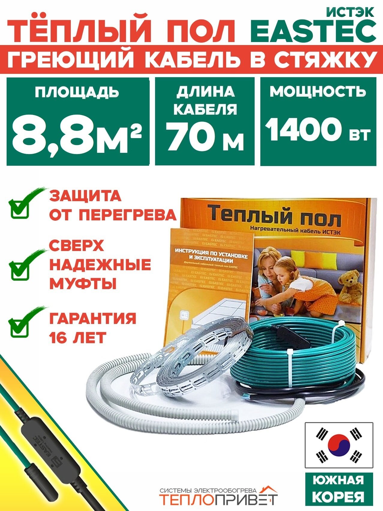 Теплый пол Eastec ECC 1400 Вт 70 м кабельный в бухте (8,8 м. кв): сравнение цен, характеристики, фото, актуальное наличие и цены.