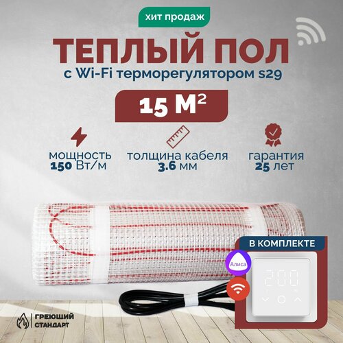 Купить Теплый пол электрический 15 м2 150 Вт под плитку с Wi-Fi терморегулятором s29 белый (нагревательный мат) с доставкой по всей России. Теплый пол электрический 15 м2 150 Вт под плитку с Wi-Fi терморегулятором s29 белый (нагревательный мат): сравнение цен, характеристики, фото, актуальное наличие и цены.