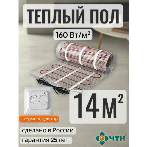 Купить Теплый пол электрический ЧТК 14,0 м2 160 Вт/м2 нагревательный мат Silver Roll с механическим белым терморегулятором с доставкой по всей России.