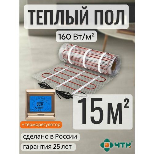 Купить Теплый пол электрический ЧТК 15,0 м2 160 Вт/м2 нагревательный мат Silver Roll с сенсорным золотистым терморегулятором с доставкой по всей России.