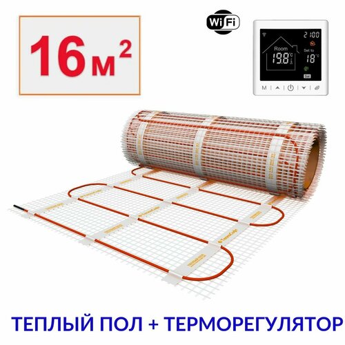 Купить Теплый пол электрический под плитку 16 м2 с умным wi-fi терморегулятором. Нагревательный мат 16м. кв с доставкой по всей России. Теплый пол электрический под плитку 16 м2 с умным wi-fi терморегулятором. Нагревательный мат 16м. кв: сравнение цен, характеристики, фото, актуальное наличие и цены.