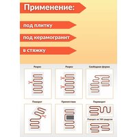 | Дополнительная информация | Комплектация: Двужильный нагревательный мат, электронный программируемый терморегулятор с датчиком температуры, гофрированная трубка, паспорт с инструкцией, фирменная упаковка |