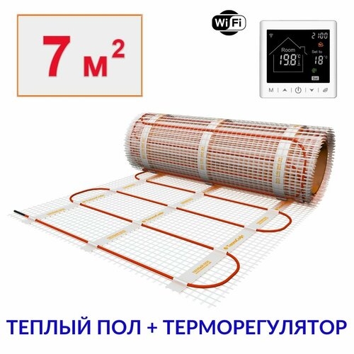 Купить Теплый пол электрический под плитку 7 м2 с умным wi-fi терморегулятором. Нагревательный мат 7м. кв. с доставкой по всей России. Теплый пол электрический под плитку 7 м2 с умным wi-fi терморегулятором. Нагревательный мат 7м. кв.: сравнение цен, характеристики, фото, актуальное наличие и цены.