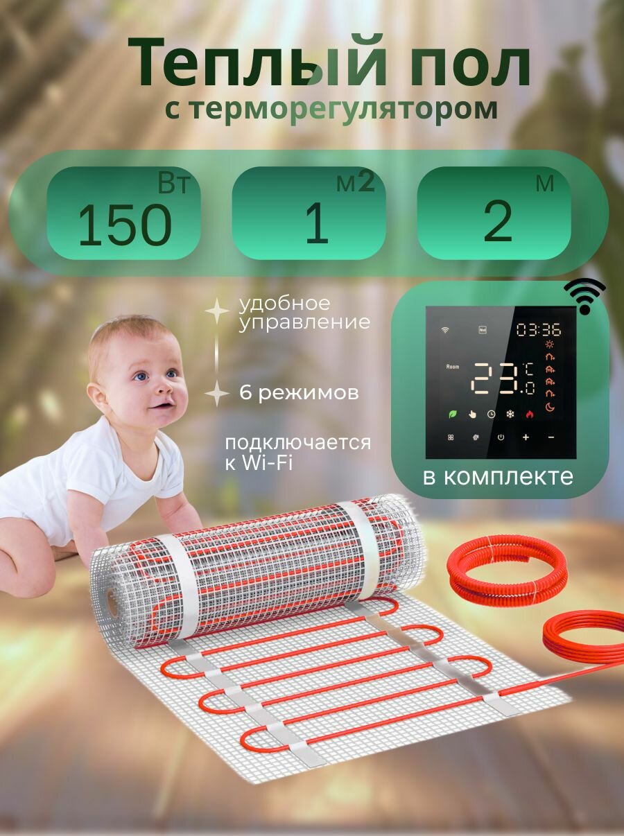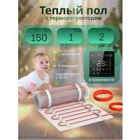 Теплый пол электрический под плитку СТН KM Light 150-1 с черным сенсорным терморегулятором