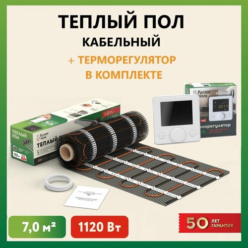 Теплый пол электрический под плитку нагревательный мат Русское тепло 7 кв. м, в комплекте с терморегулятором РТ-15 (3.5 кВт.).: сравнение цен, характеристики, фото, актуальное наличие и цены.