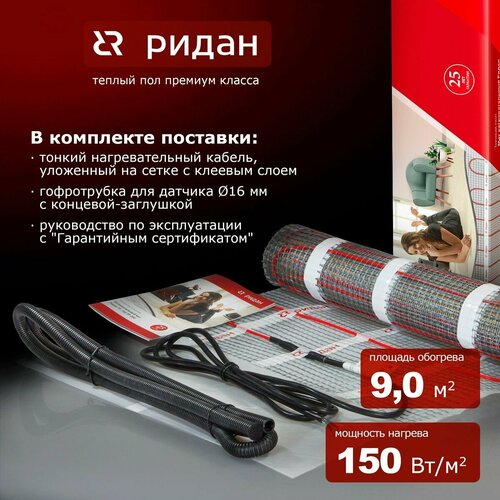 Теплый пол электрический под плитку Ридан TF-150 9 м2 нагревательный мат тонкий на самоклеящейся сетке: сравнение цен, характеристики, фото, актуальное наличие и цены.