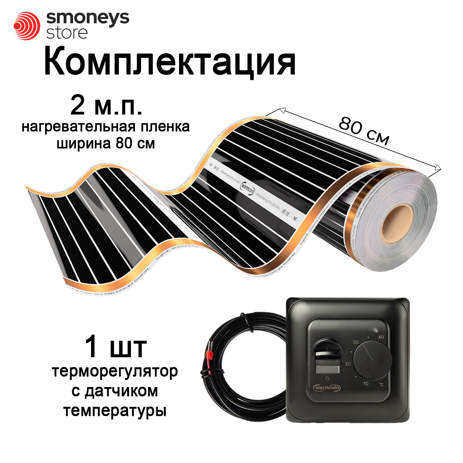 Теплый пол инфракрасный 80 см, 2 м. п. 180 Вт/м. кв. с терморегулятором