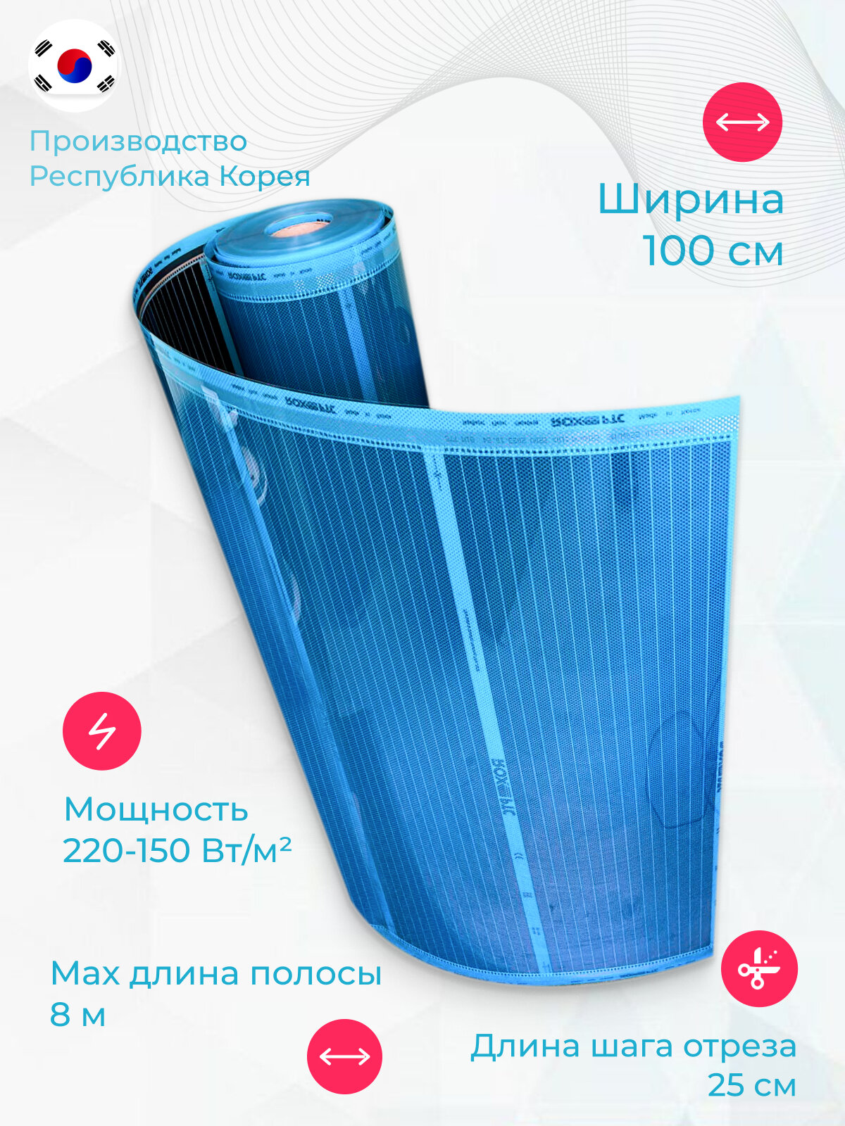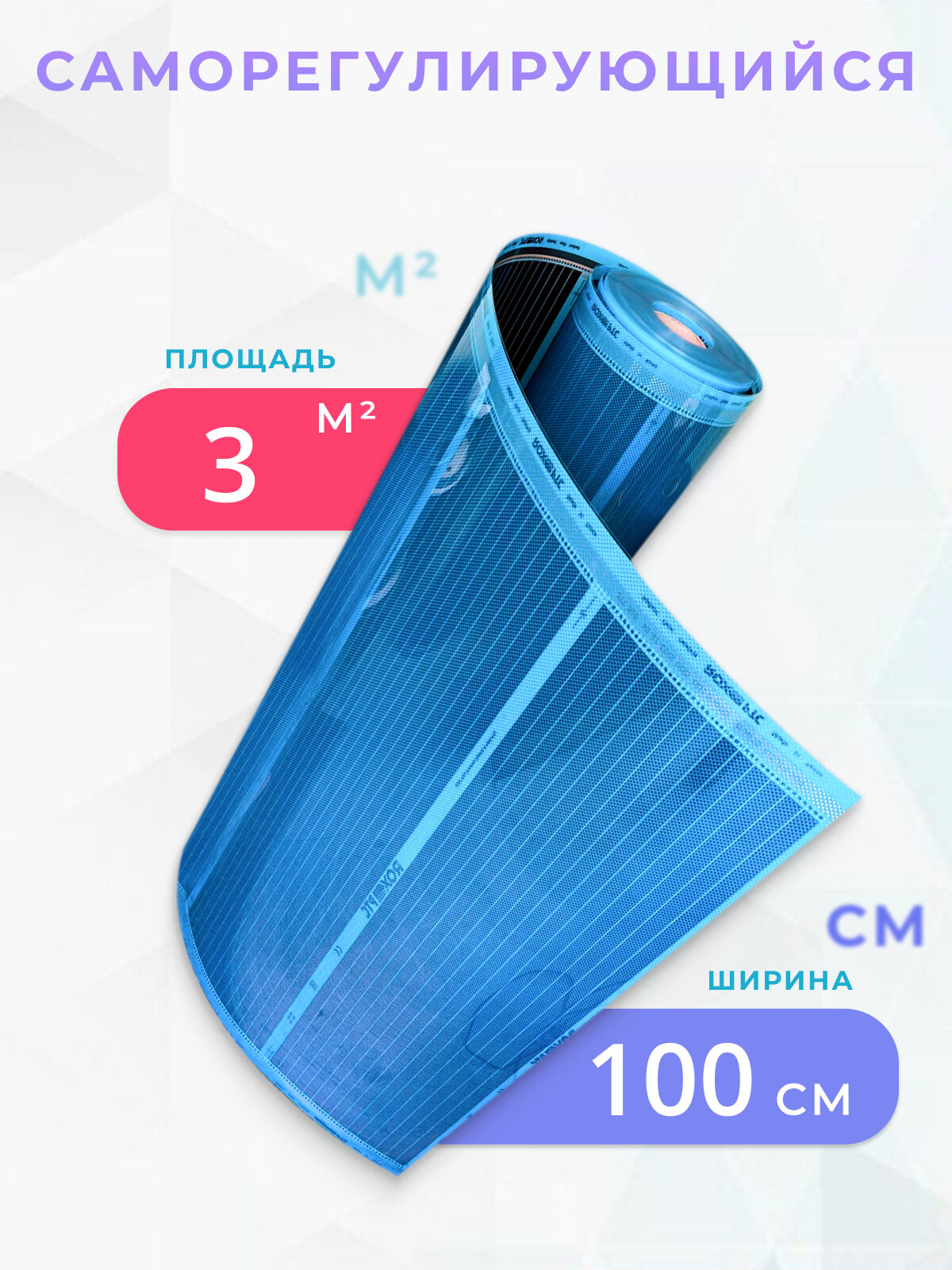 Теплый пол пленочный инфракрасный 100 см, 3 м2, саморегулирующаяся, под ламинат, линолеум, ковролин
