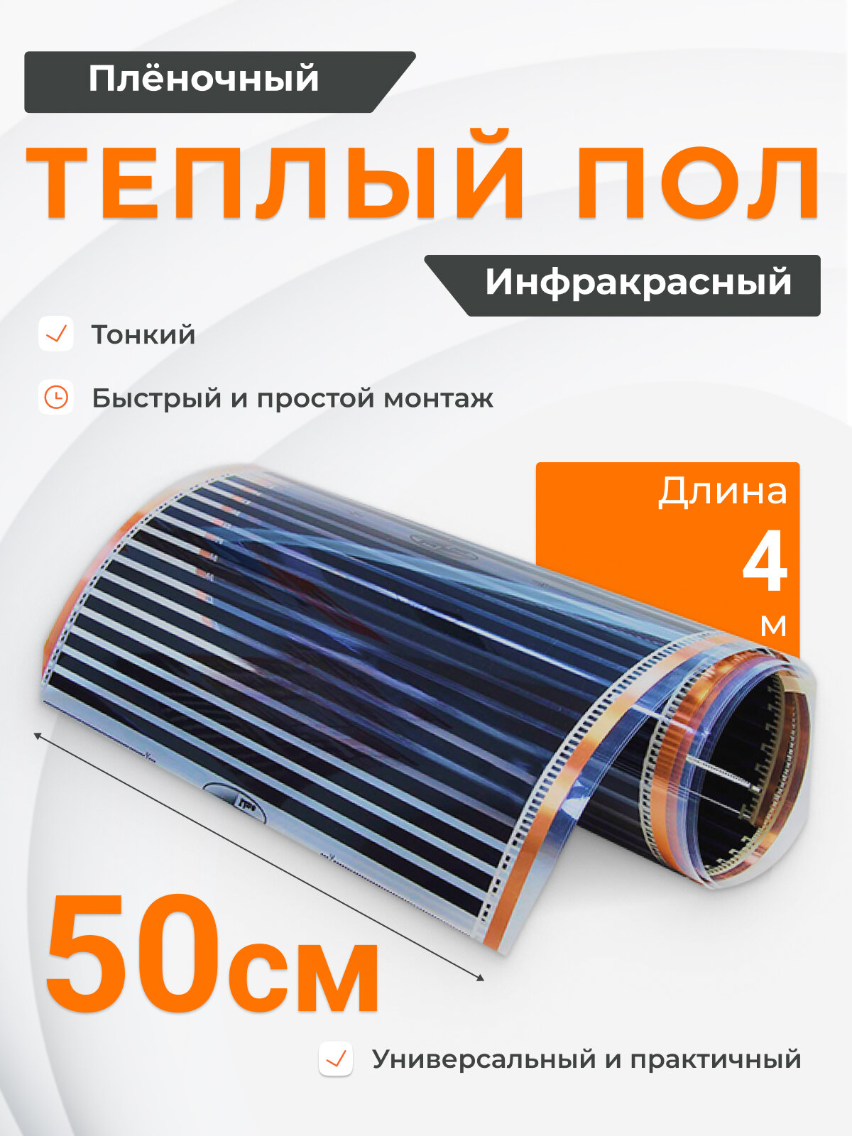Купить Теплый пол пленочный инфракрасный 50 см, 2 м2, 4 м, под ламинат, линолеум, ковролин с доставкой по всей России. Теплый пол пленочный инфракрасный 50 см, 2 м2, 4 м, под ламинат, линолеум, ковролин: сравнение цен, характеристики, фото, актуальное наличие и цены.
