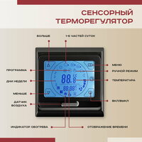 Благодаря своей сенсорной панели и возможности программирования, терморегулятор легко встраивается в стандартную монтажную коробку, предоставляя эффективное управление системой обогрева для комфортного и экономичного обогрева помещений.