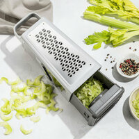 Терка 4-х сторонняя ZWILLING Z-Cut станет незаменимым помощником на вашей кухне. Терка ZWILLING Z-Cut позволяет натирать, измельчать или нарезать сыр, фрукты, овощи, орехи и даже шоколад. Она имеет мелкую, среднюю и крупную терку, а также двустороннее лезвие. Наш многолетний опыт работы с ножами и режущими технологиями нашел свое отражение в лезвиях Z-Cut. Благодаря уникальной технологии Z-Cut шинковка стала совсем простой. Лезвия из нержавеющей стали 18/10 позволяют натирать в обоих направлениях, что делает работу быстрее и эффективнее. Эта многофункциональная терка также оснащена впечатляющими умными решениями. Встроенный поддон для сбора гарантирует легкую извлечение натертых продуктов. Нескользящее основание гарантирует постоянный полный контроль даже при интенсивном натирании. 4-х сторонняя терка разработана миланскими дизайнерами Маттео Туном и Антонио Родригесом и впечатляет своим минималистичным дизайном. После использования терку легко чистить, ведь ее можно мыть в посудомоечной машине.