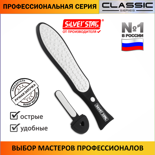 Терка для ног - лазерная пилка для педикюра с пилкой в ручке. Лазерные терки Silver Star предназначены для удаления высохшей кожи с пяток и пальцев ног, удаления натоптышей и толстой грубой кожи. На металлической поверхности терки расположены мелкие острые насечки, которые не травмируют кожный покров, позволяя легко и быстро обработать пятки, снимая самые грубые слои кожи. Предварительно необходимо распарить кожу стоп, чтобы терка не цепляла кожу и не образовались заусенцы. Для лучшего эффекта рекомендуется после процедуры нанести любимый увлажняющий или питательный крем. Компания Silver Star уже 20 лет производит удобные и качественные инструменты для маникюра, педикюра, бровей, наращивания ресниц и косметологии.