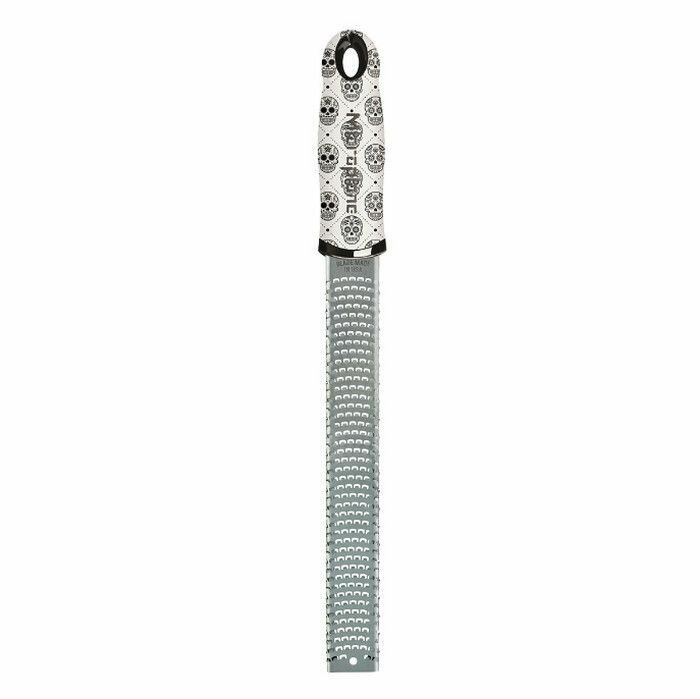 Объедините стиль и функциональность с теркой Microplane из нержавеющей стали. Изготовленный из высококачественной американской нержавеющей стали и украшенный забавным принтом сахарного черепа, это не просто кухонный инструмент — это повод для разговора.