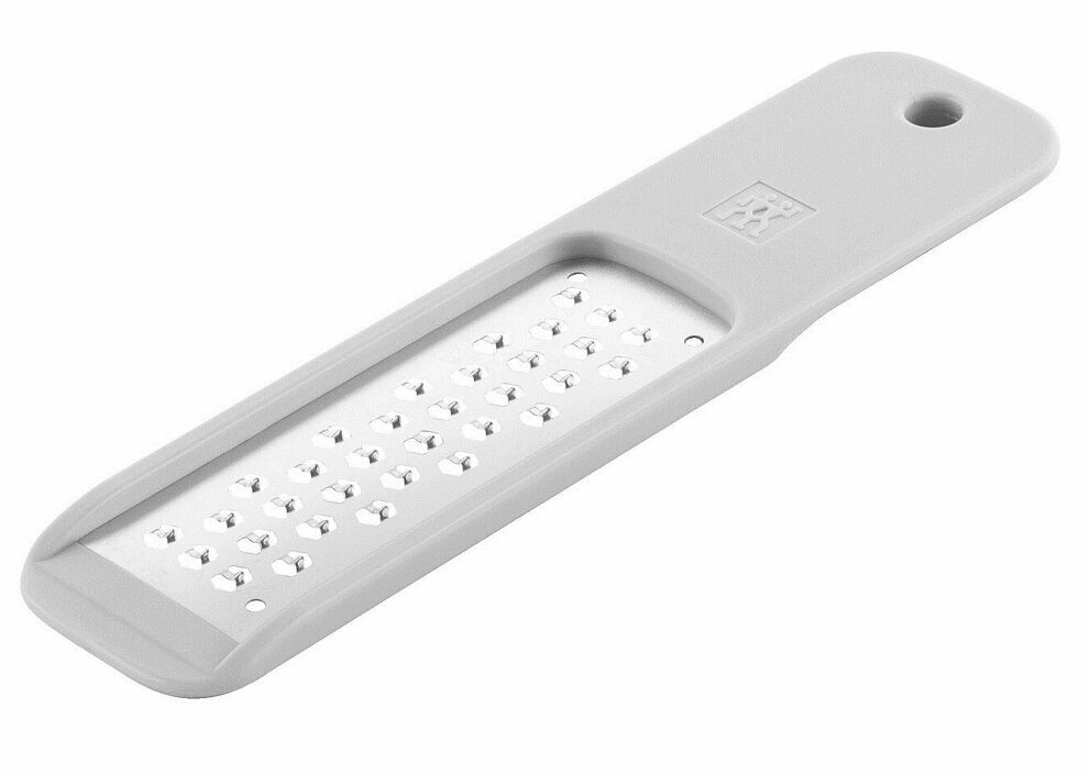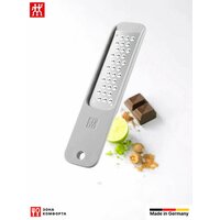 Терка мини ZWILLING Z-Cut, 36610-000Готовьте здоровые блюда из свежих продуктов. Теперь это возможно без долгого измельчения и нарезки - с помощью многофункциональной терки ZWILLING серии Z-Cut. Самый компактный ее элемент - это мини-терка для лимона, для пармезана и для мускатного ореха. Это удобное кухонное приспособление показывает, на что оно способно, с первого использования. Разумеется: терка создана на основе наших многолетних разработок в области ножей и режущих инструментов. Запатентованная технология Z-Cut с Z-образным дизайном лезвий из нержавеющей стали обеспечивает повышенную эффективность работы. Благодаря двустороннему принципу действия лезвий вы можете тереть в обоих направлениях и без труда натирать мускатный орех, имбирь, чеснок, шоколад или даже твердый сыр. Терка абсолютно плоская, и ее можно использовать где угодно: вы можете натирать продукты в тарелку, миску или салат. Большая поверхность терки из нержавеющей стали в сочетании с высококачественной пластиковой ручкой обеспечивает удобство использования. Маленькая терка также впечатляет визуально своим вневременным лаконичным дизайном, созданным миланскими дизайнерами Маттео Туном и Антонио Родригесом. Мини-терку можно легко мыть в посудомоечной машине.