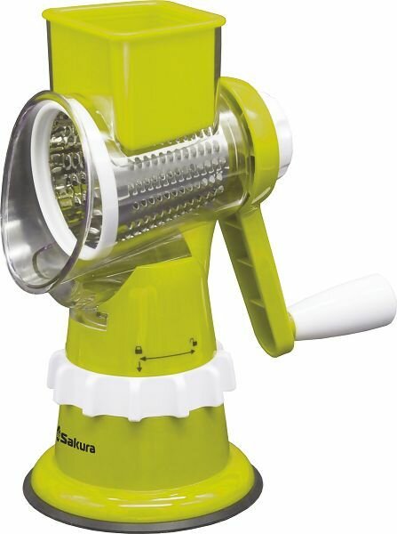Купить Терка-овощерезка SA-VS02G-3 насадки, мелкая терка, средняя терка, слайсер, основание и ручка из ABS пластика, материал лезвия из нержавеющей стали, зеленая (OL) с доставкой по всей России.