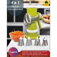 Терка-овощерезка SA-VS02G-4 насадки, мелкая терка, средняя терка, крупная терка, слайсер, основание и ручка из ABS пластика, материал лезвия из нержавеющей стали, зеленая (OL)