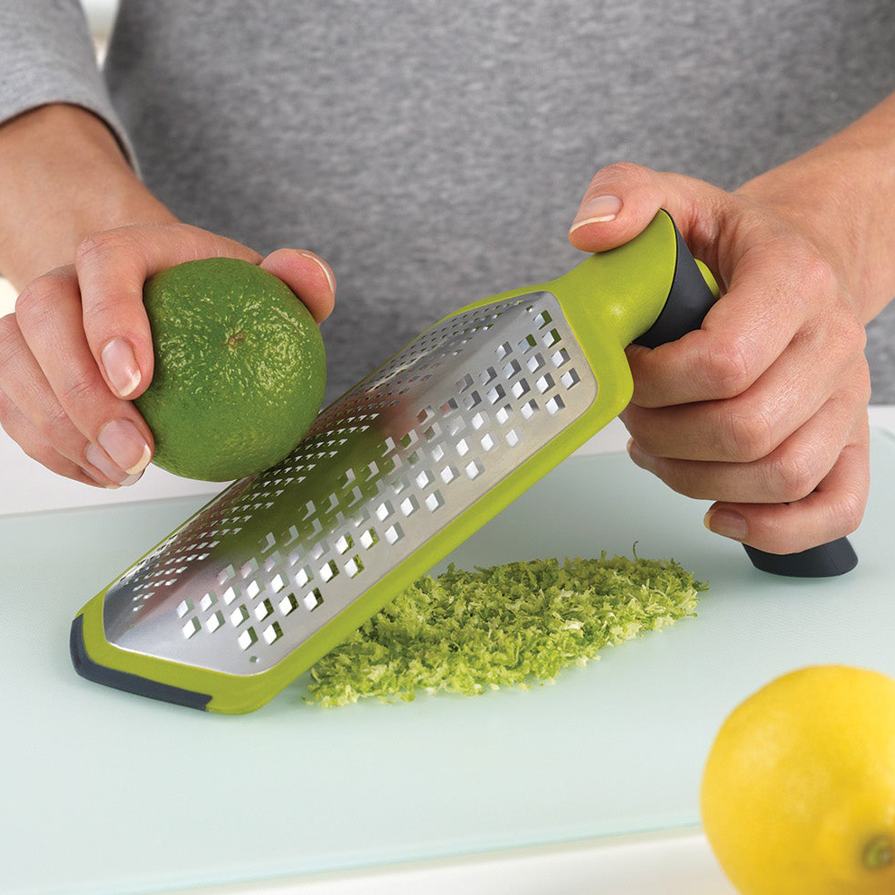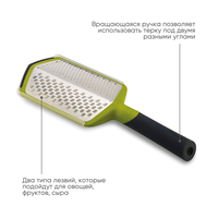 Необычная тёрка с множеством преимуществ. Во-первых, у терки нескользящее основание и нескользящая рукоятка, которую можно повернуть, зафиксировав тёрку в положении под углом 45° градусов. Это облегчает приготовление, особенно, если необходимо натереть большое количество продуктов.