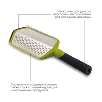 В набор входит съемный контейнер, который крепится на тёрку и собирает продукты - все до единой крупинки.