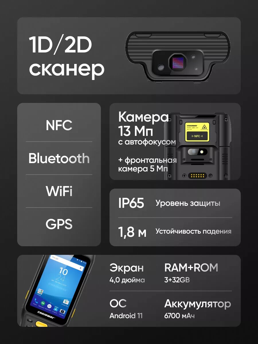 Терминал сбора данных CHAINWAY C61, 37 клавиш: сравнение цен, характеристики, фото, актуальное наличие и цены.