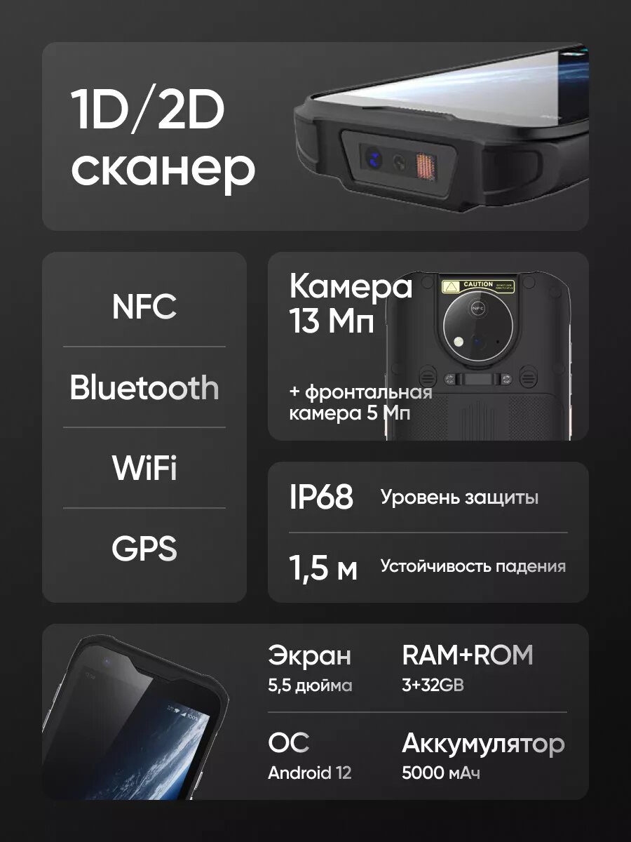 | Подробная комплектация | ТСД, кабель, аккумулятор, адаптер, ремешок на руку |