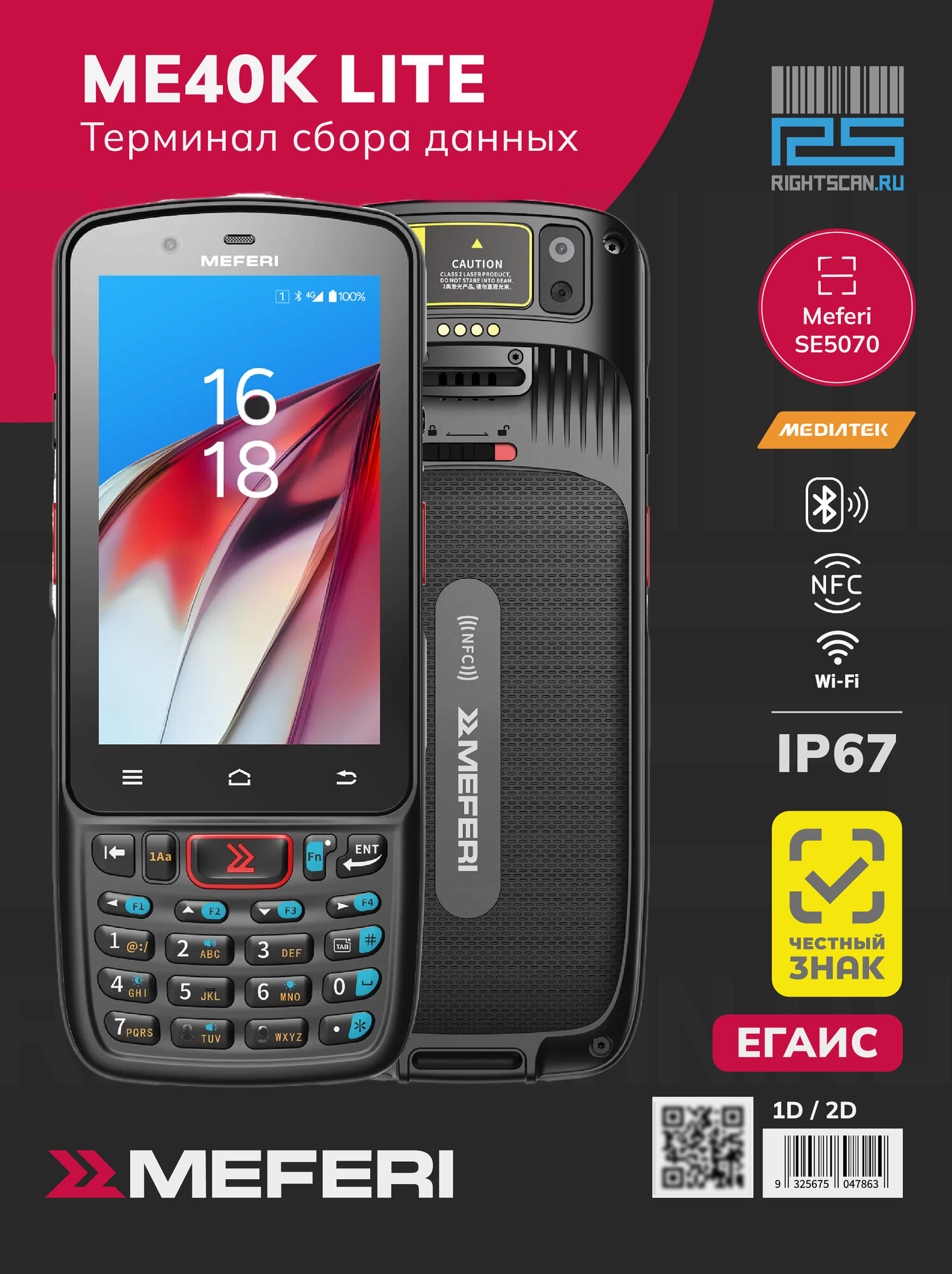 Купить Терминал сбора данных (ТСД) Meferi ME40K LITE, 2D сканер SE5070, WiFi 6, Bluetooth, IP67, GMS, AER, SOTI с доставкой по всей России.